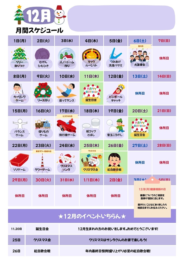 11日(水) 誕生日会を行います!今月は3名の方がお誕生日を迎えられます!