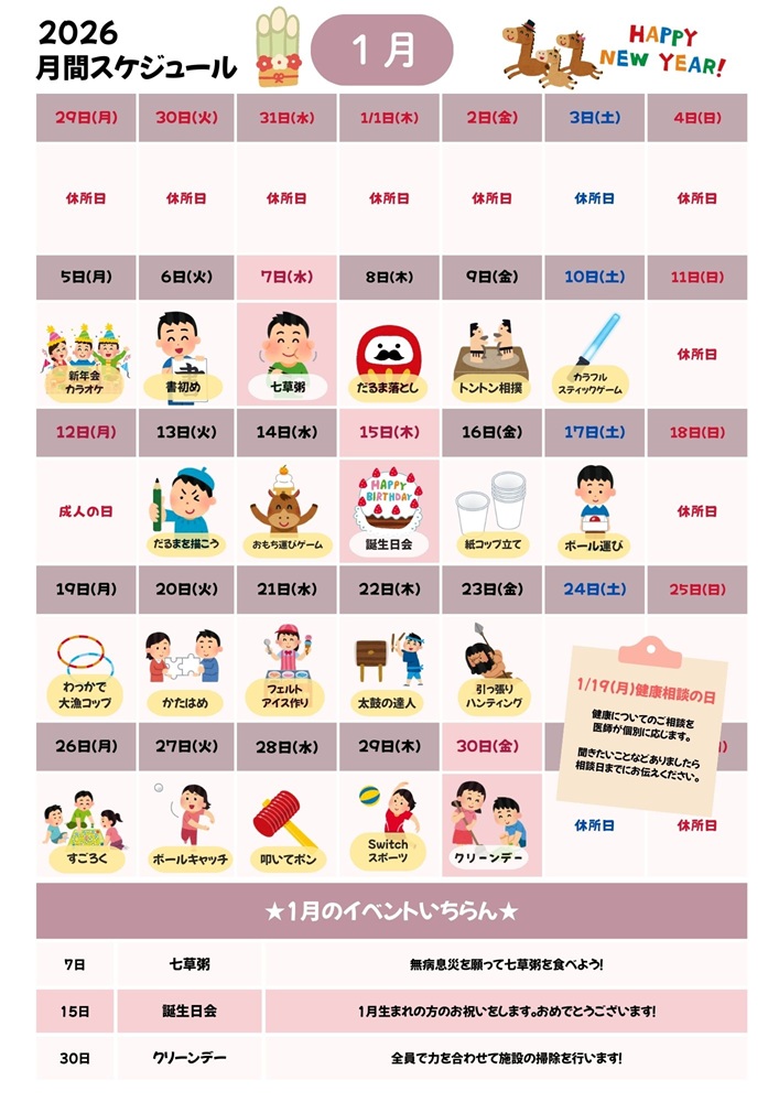 ◆27日(水)に、1月が誕生日月の方の『誕生日会』を行います。